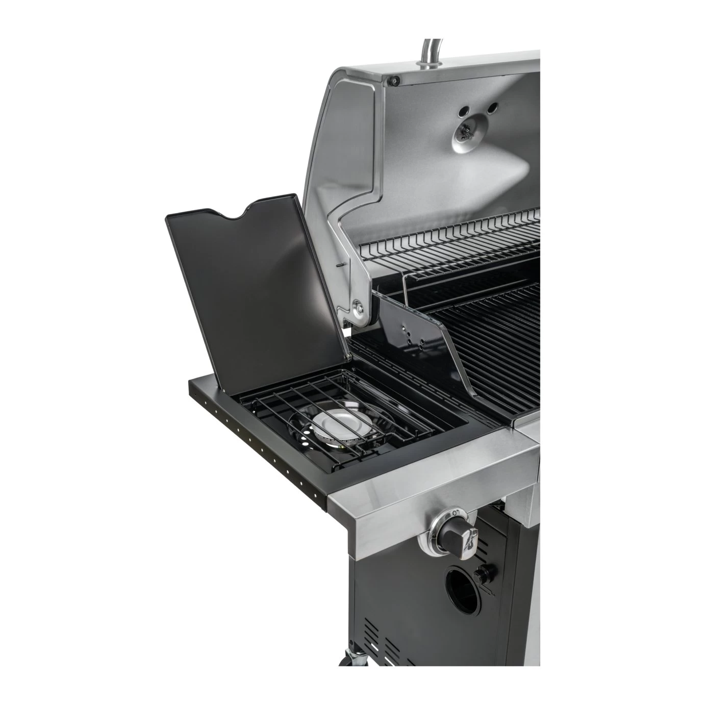 With an integrated griddle, this 4 burner grill offers a variety of ways to prepare meat, fish, vegetables, desserts and also breakfast. The comfort-grip handles offer a pleasant feel when handling.