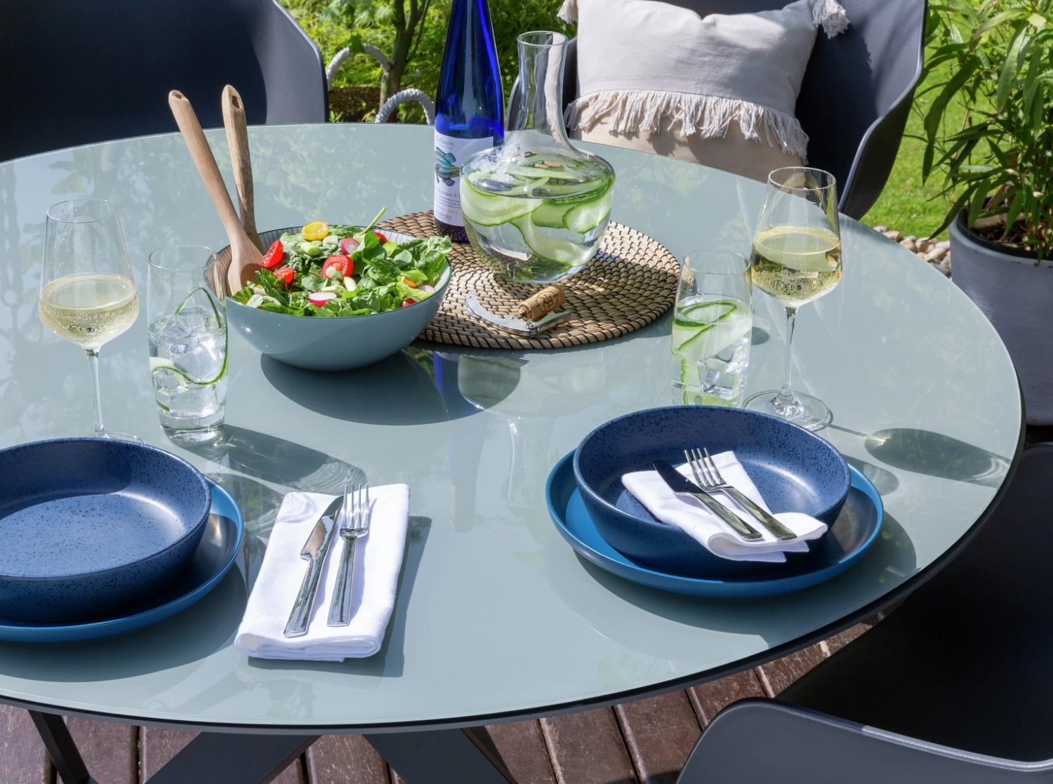We love a party. And so does our luxe 6-seater patio set. It's ideal for a big family get together or lazy lunch with friends. Relaxed, but with a distinctly modern attitude, it's a great way to maximise your outdoor space. The table is designed so the 6 bucket chairs fit neatly underneath. Fire up the BBQ and watch as this good-time patio set becomes the happy hub of your garden celebrations. Count us in.