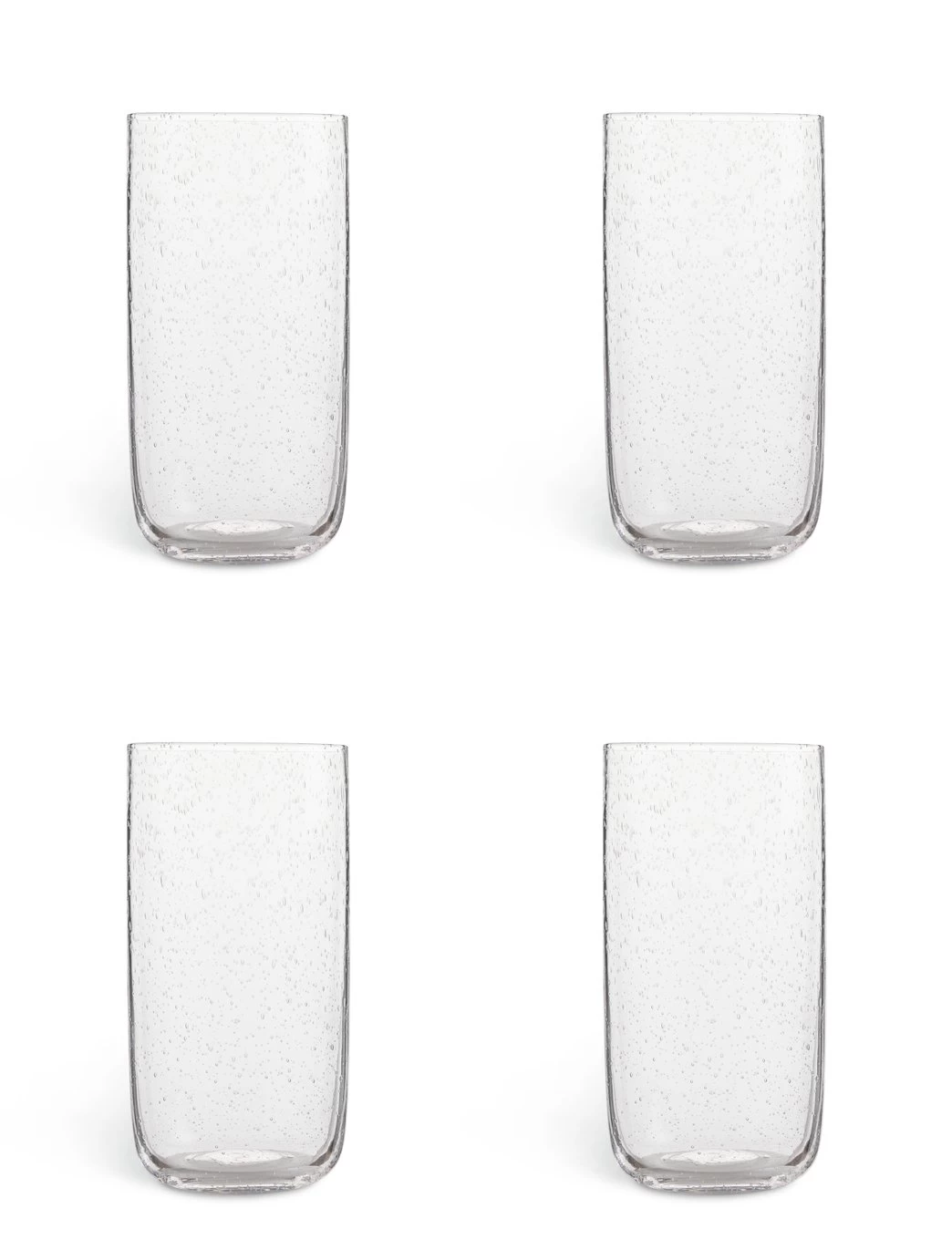 Bubbles, anyone? Smooth and simple with a designer twist, our set of 4 tall glasses are delightfully elegant. Curved, clear glass crafted with a bubble effect bring a modern feel to the table. Water, juice or a cheeky G&T? With this versatile set, it's totally up to you. Hydrate, the handsome way.